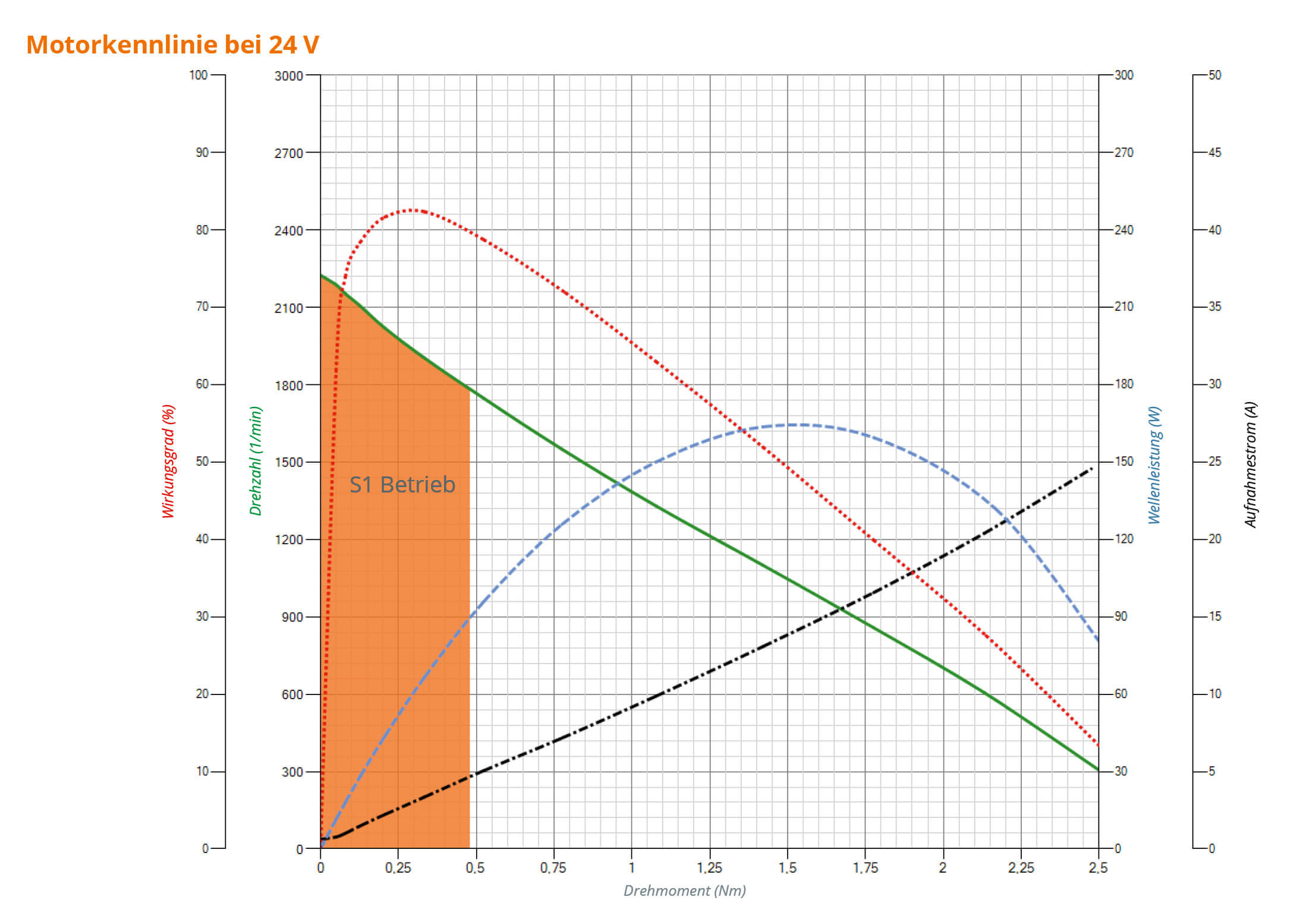 t-Rex 3206 I-65-51-L34 S2 (kurze Version, Fokus Drehzahl) bei 24 VDC